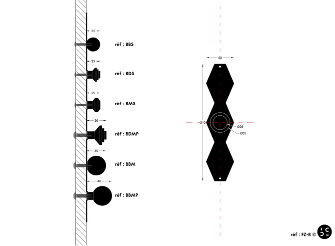 We recommend positioning the assembly "blank" to check the ideal position on your door. Once the hole for the button is made, install the plate then mark the holes necessary for its fixing. Dismantle the assembly then drill the pre-holes for the screws with the appropriate drill bit. Screws are provided to enable the pre-holes to be tapped and to facilitate final screwing. Install the plate, with the finishing screws. In order to avoid damaging the head of the screws of the decorative plates, screw gently with a suitable screwdriver. Installation by a diligent professional is recommended.