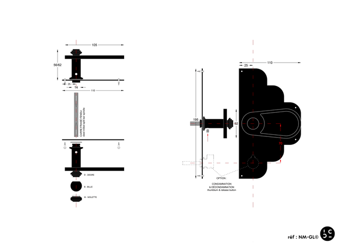 We recommend fitting the handles “blank” then marking the holes necessary for fixing the plate. Disassemble the assembly then drill the pre-holes for the screws with a suitable drill bit.