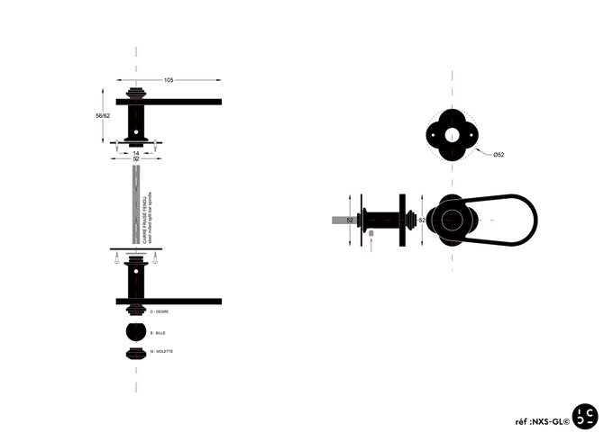 We recommend fitting the handles “blank” then marking the holes necessary for fixing the plate. Disassemble the assembly then drill the pre-holes for the screws with a suitable drill bit.