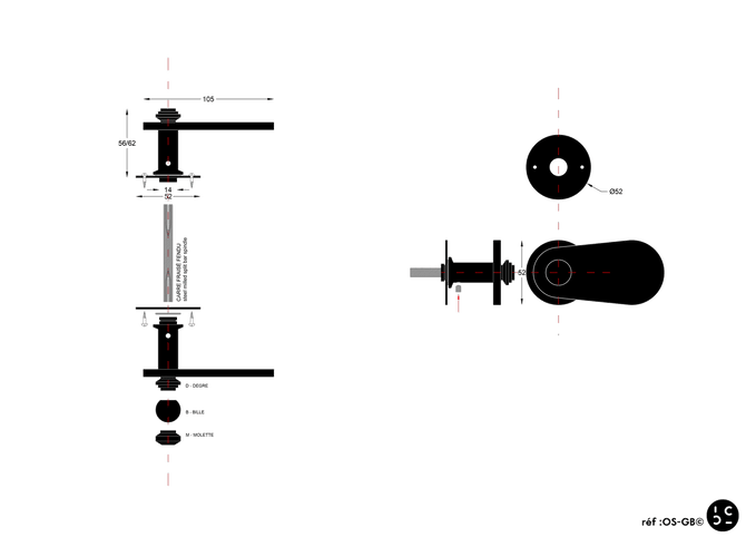 We recommend fitting the handles “blank” then marking the holes necessary for fixing the plate. Disassemble the assembly then drill the pre-holes for the screws with a suitable drill bit.