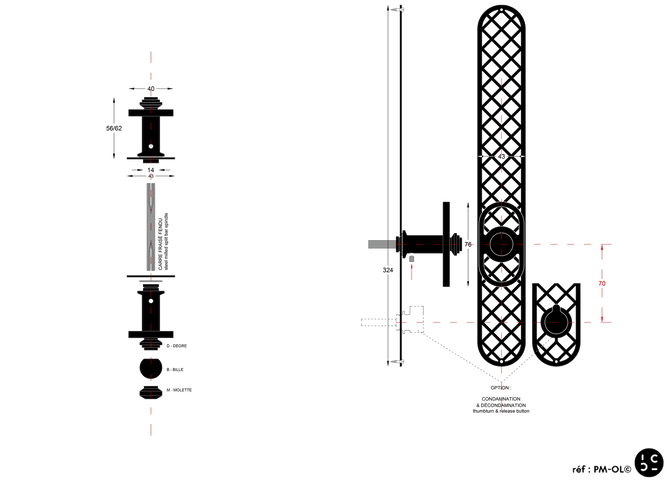 We recommend fitting the handles “blank” then marking the holes necessary for fixing the plate. Disassemble the assembly then drill the pre-holes for the screws with a suitable drill bit.