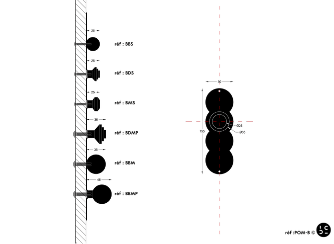 MEDIUM with FOOT: diameter 35mm - height 46mm