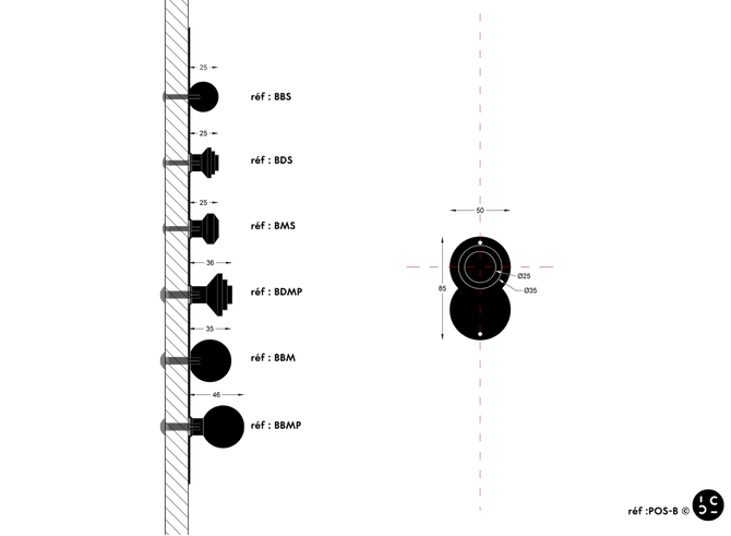 MEDIUM with FOOT: diameter 35mm - height 46mm