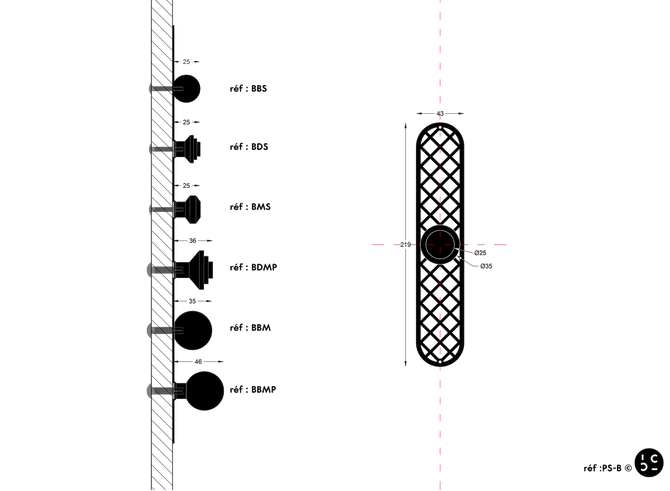 We recommend positioning the assembly "blank" to check the ideal position on your door. Once the hole for the button is made, install the plate then mark the holes necessary for its fixing. Dismantle the assembly then drill the pre-holes for the screws with the appropriate drill bit. Screws are provided to enable the pre-holes to be tapped and to facilitate final screwing.