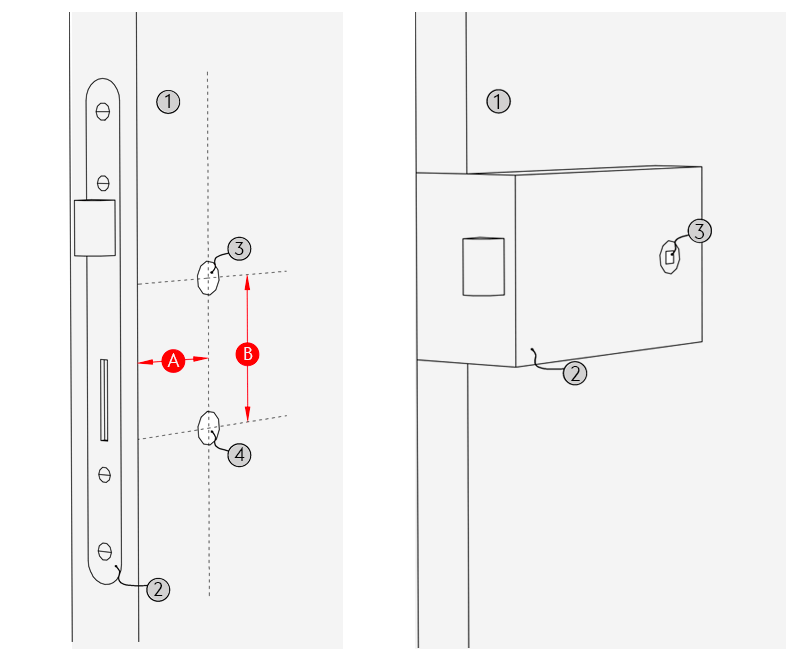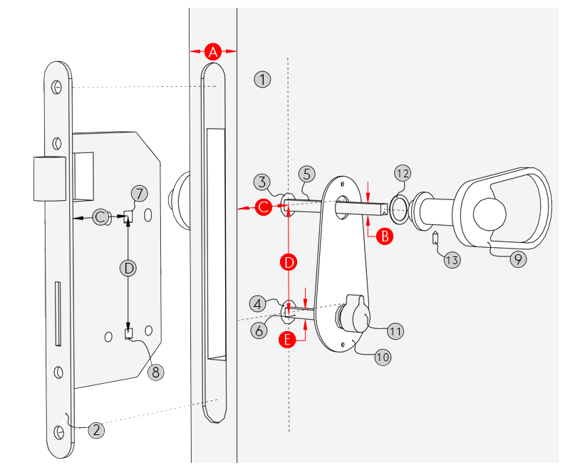 (A) The axis of the lock: distance between the edge of the door and the axis of the