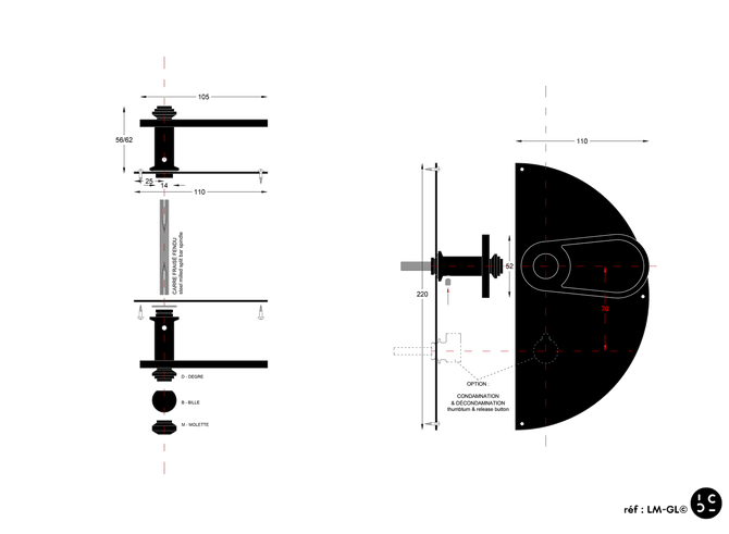 Recommended lock: axis 40mm minimum.