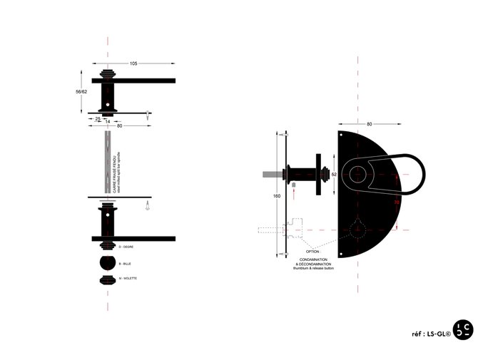 Insert the nylon washer between the handle and the decorative plate. With the Allen key, screw the grub screw located under the handle on the split square on the countersunk side. The screw will spread the square and allow a perfect hold. When tightening, the handles must be on one side as on the other well pressed against the plate. Installation by a diligent professional is recommended.
