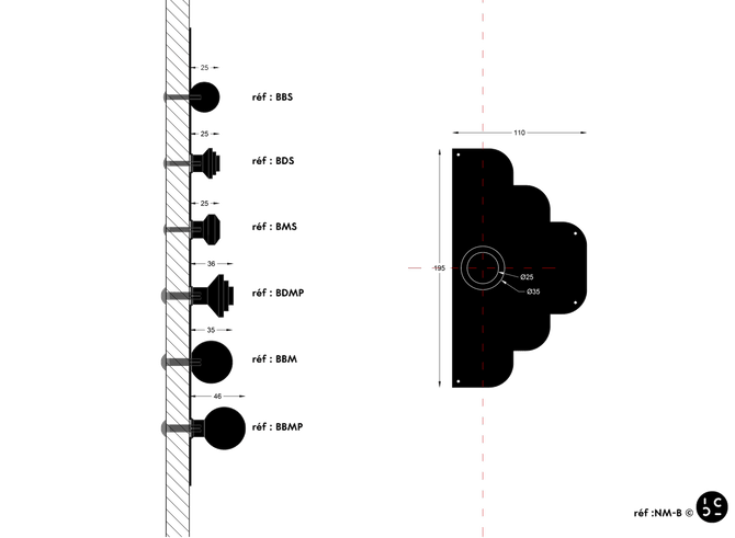 We recommend positioning the assembly "blank" to check the ideal position on your door. Once the hole for the button is made, install the plate then mark the holes necessary for its fixing. Dismantle the assembly then drill the pre-holes for the screws with the appropriate drill bit. Screws are provided to enable the pre-holes to be tapped and to facilitate final screwing.