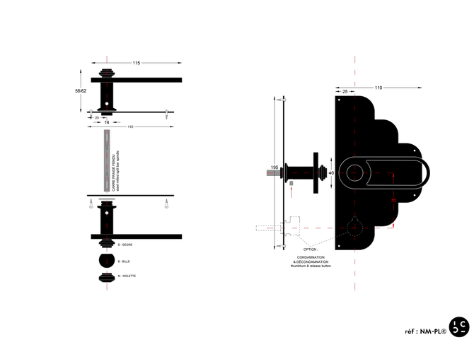 We recommend fitting the handles “blank” then marking the holes necessary for fixing the plate. Disassemble the assembly then drill the pre-holes for the screws with a suitable drill bit.