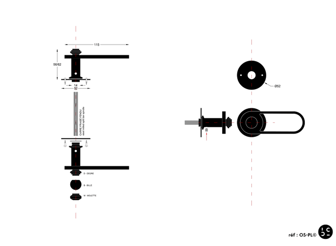 We recommend fitting the handles “blank” then marking the holes necessary for fixing the plate. Disassemble the assembly then drill the pre-holes for the screws with a suitable drill bit.