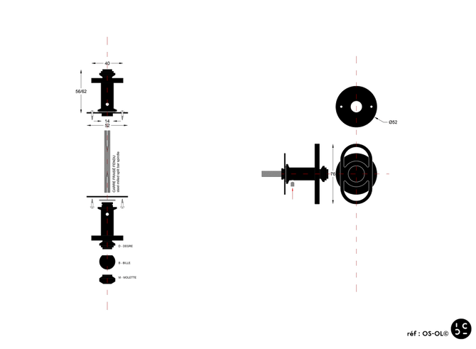 Recommended lock: axis 40mm minimum. / ideal 50mm