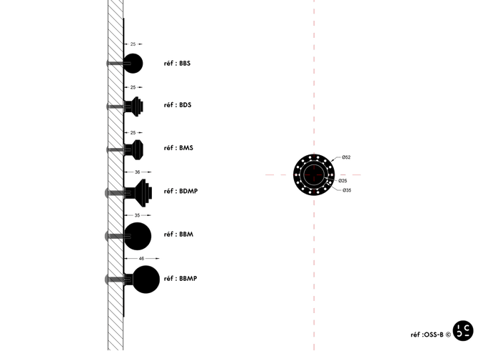 We recommend positioning the assembly "blank" to check the ideal position on your door. Once the hole for the button is made, install the plate then mark the holes necessary for its fixing. Dismantle the assembly then drill the pre-holes for the screws with the appropriate drill bit. Screws are provided to enable the pre-holes to be tapped and to facilitate final screwing.