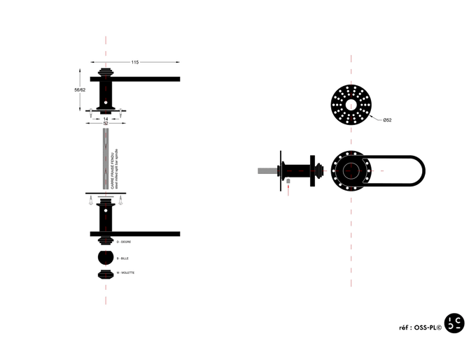 Recommended lock: axis 40mm minimum. / ideal 50mm