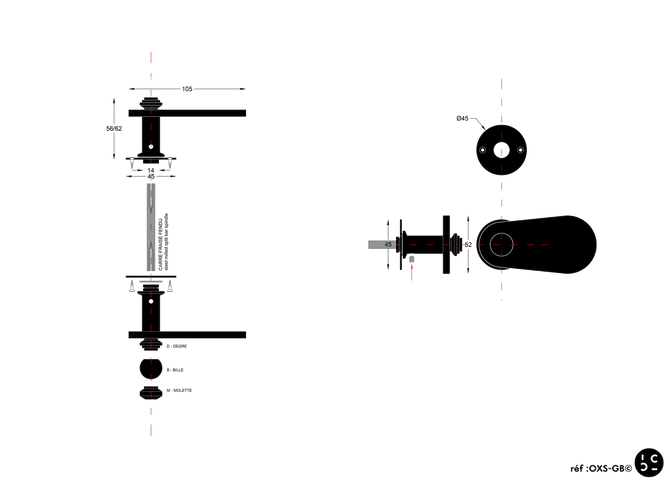 We recommend fitting the handles “blank” then marking the holes necessary for fixing the plate. Disassemble the assembly then drill the pre-holes for the screws with a suitable drill bit.