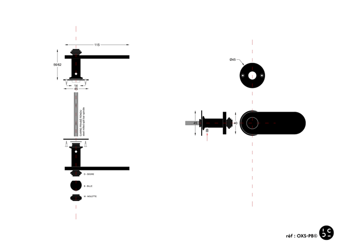 We recommend fitting the handles “blank” then marking the holes necessary for fixing the plate. Disassemble the assembly then drill the pre-holes for the screws with a suitable drill bit.