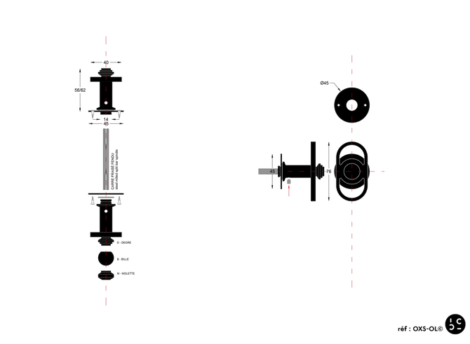 We recommend fitting the handles “blank” then marking the holes necessary for fixing the plate. Disassemble the assembly then drill the pre-holes for the screws with a suitable drill bit.