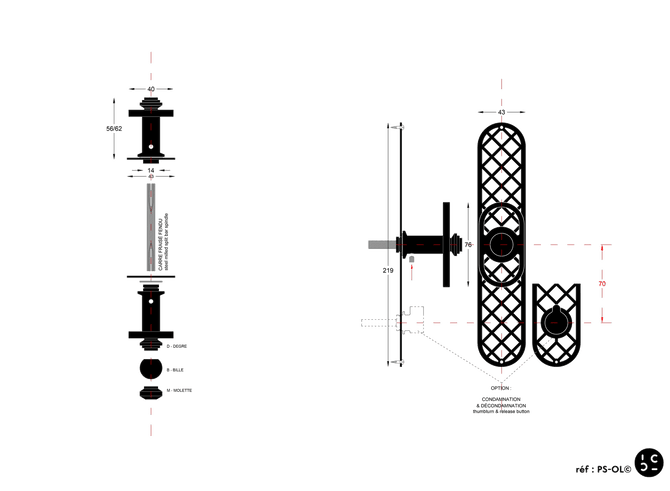 By choosing this option you will have to make sure to equip your door with a French lock whose handle → locking center distance measures 70mm. (See map opposite)