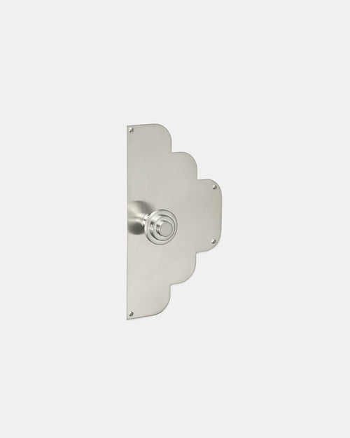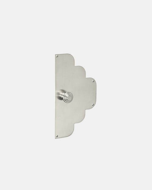 Le laiton brut est poli, il reçoit un décor de nickel par électrolyse en deux couches successives. Il est ensuite légèrement brossé manuellement. Cette finition sans vernis est très résistante aussi bien en intérieur qu’en extérieur. La teinte chaude du nickel donne un argenté aux reflets légèrement dorés.